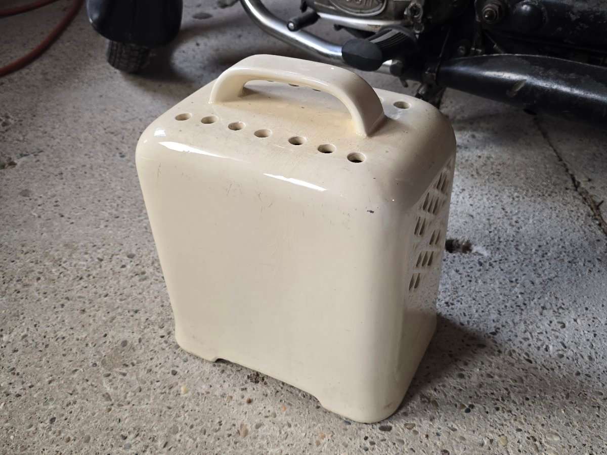 Verschenke diesen antiken Keramik Heizkörper. Schätze ihn aus den 30er Jahren. Der Zustand ist dem Alter entsprechend, auf der Vorderseite gibt es einen Bruch, siehe Foto. Funktion ungeprüft, Kabel nicht mehr vorhanden. Selbstabholung in 2432 Schwadorf.