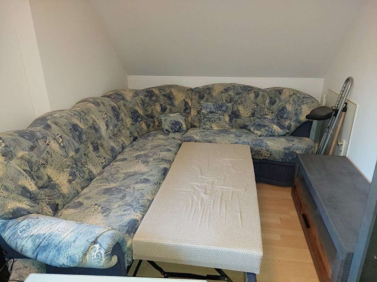 Großes Sofa mit Federkern + Hocker – bequem & gepflegt Verschenke ein komfortables Sofa mit Federkern in großzügiger Größe. Maße Sofa: ca. 2,50 m x 1,80 m Sitzhöhe: ca. 46 cm Sitztiefe: ca. 50 cm Bequemer Federkern für hohen Sitzkomfort Inkl. Hocker (50...