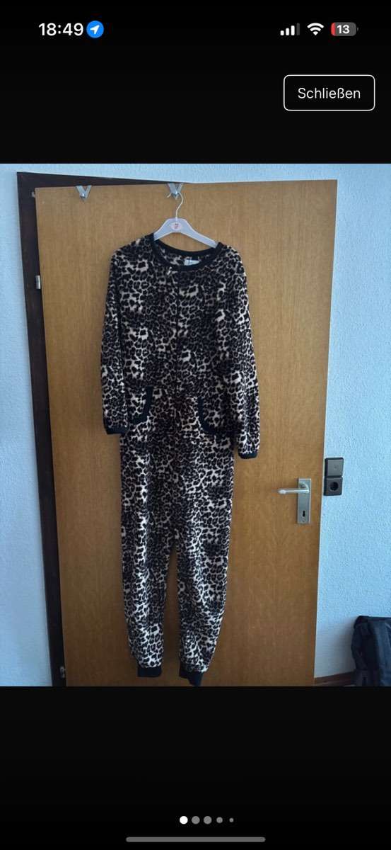 Einteiliger Pyjama | in Leopardenform | haelt sehr warm | praktisch | Größe M