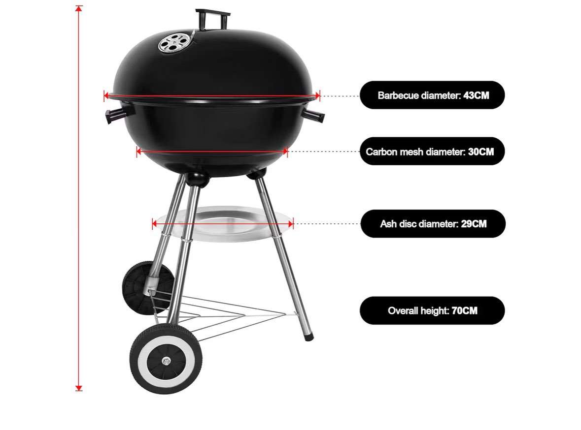 Holzkohlegrill, tragbar, rund, Deckel, Doppelräder, Grill auf Standfuß, 41 cm, Höhe 70 cm, Schwarz Marke: SunJas