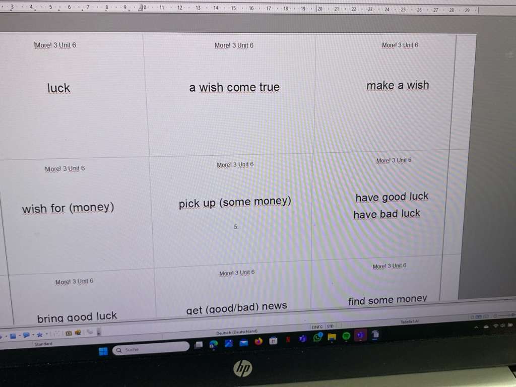 Habe mit bestem Wissen und Gewissen letztes Jahr Karteikarten zum Ausdrucken gemacht. Würde die Datei per Mail senden wenn sie wer will. Es sind die Vokabeln vom More! 3 + ein paar extra Vokabeln aus dem Text