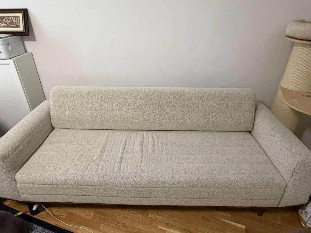 Verschenke ein 3-Sitzer Sofa wegen Neuanschaffung. Das Sofa ist ausziehbar und kann auch als Bett genutzt werden. Rückenlehne ist verstellbar – sehr praktisch. Zustand: Gebraucht, insgesamt noch gut erhalten. An einer Stelle gibt es leichte Schäden vom...