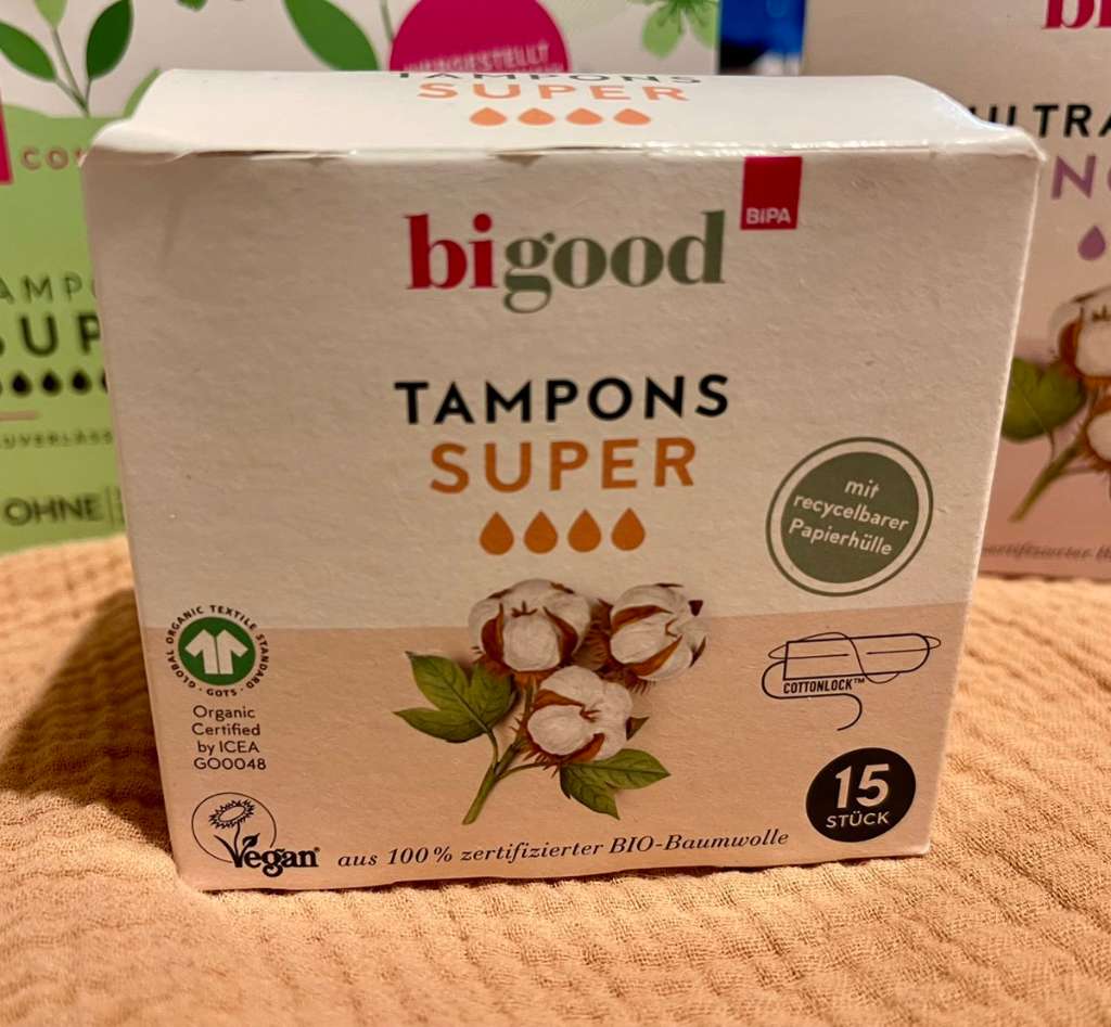 Sanfter Schutz aus Bio-Baumwolle – plastikfrei & hautfreundlich Ich biete eine neue Packung bigood Tampons Super – aus reiner Bio-Baumwolle und frei von Zusätzen. Ideal für normale bis starke Blutung – besonders geeignet für sensible Haut. Merkmale: • 15...