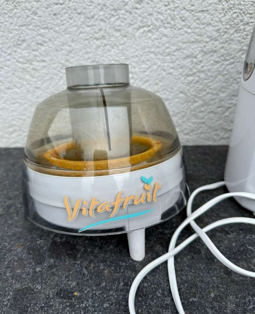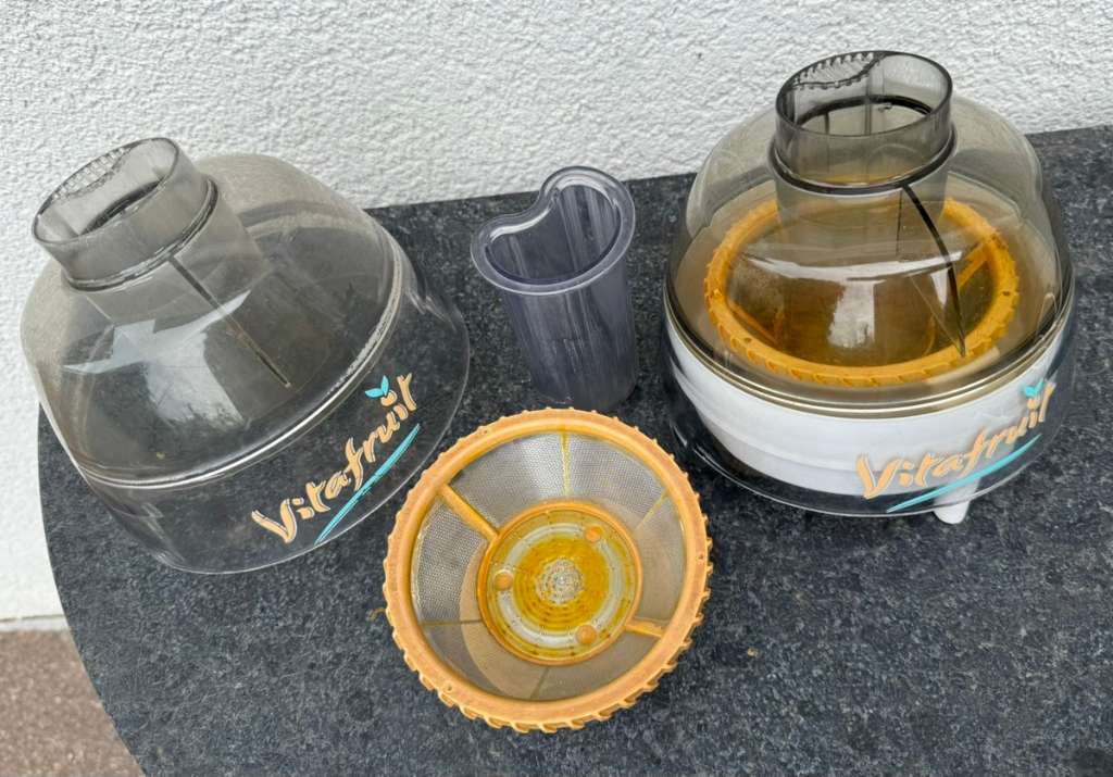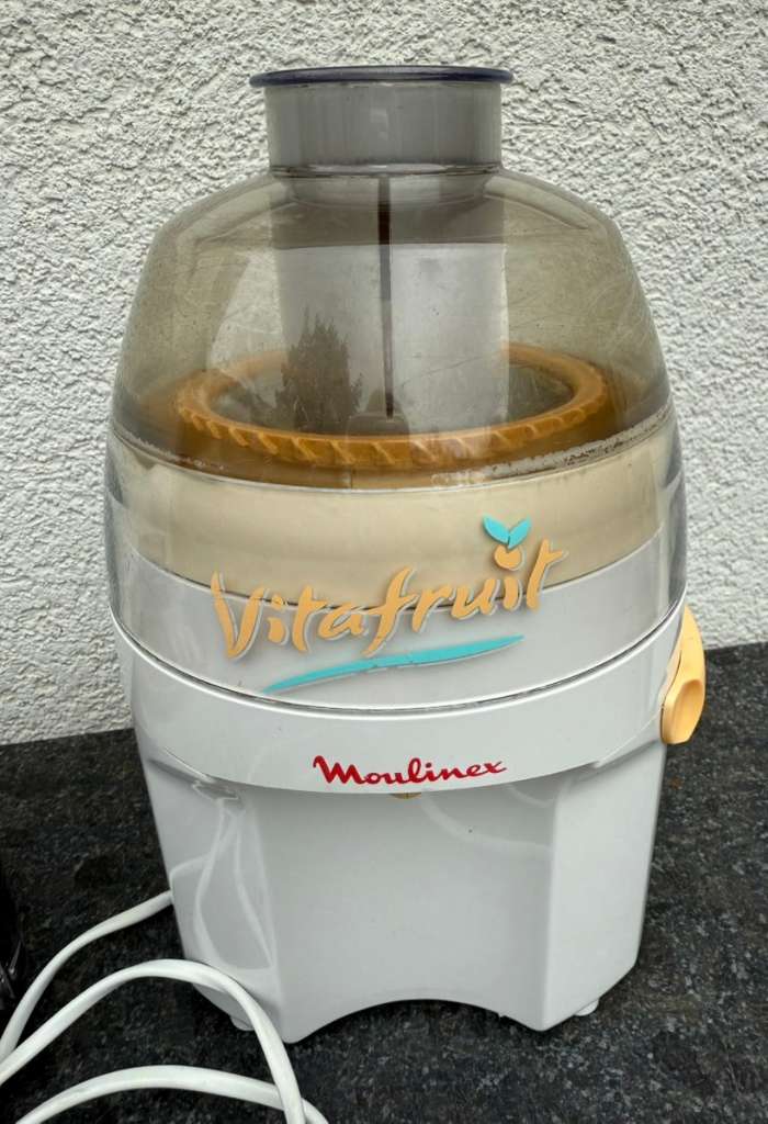 Ich hatte 2 dieser Saftpressen die jetzt nach vielen Jahren leider nicht mehr funktionieren. Die Aufsätze sind noch funktionstüchtig - vielleicht freut sich jemand!?