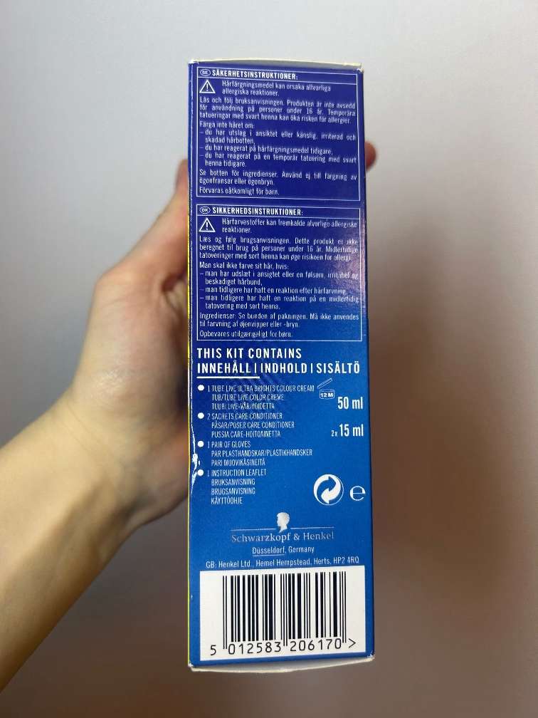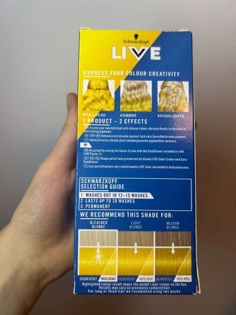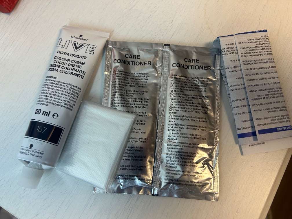 Gelbe Haarfarbe, sie war bis März 2026 haltbar, aber ich denke, sie kann noch gut zu verwenden. Unbenutzt. Zu verschenken.
