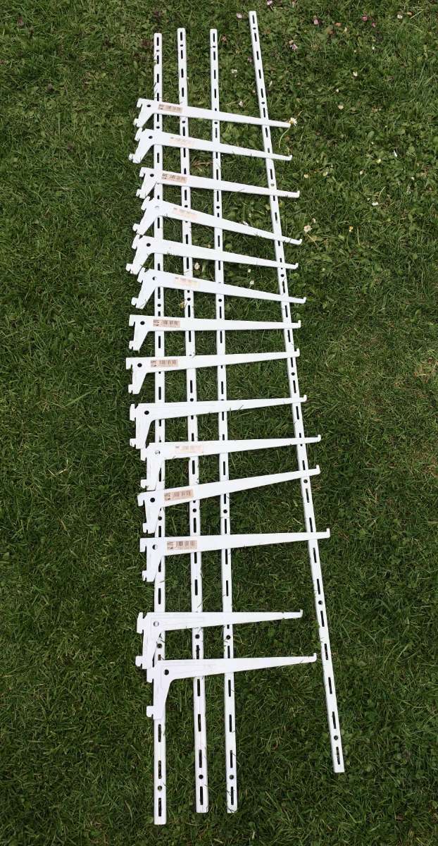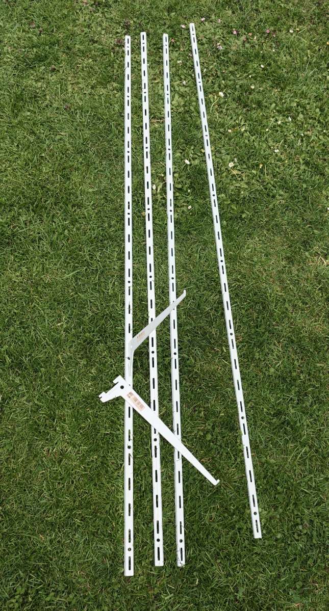 Verschenke 4 Regalschienen 150 cm in weiß und 6 in braun 150 cm dazupassend 12 Einlochträger mit 30 cm weiß 2 Einlochträger mit 25 cm weiß 22 Einlochträger mit 40 cm in braun wird nur zusammen verschenkt Nur Abholung!!! Kein Umtausch und keine...