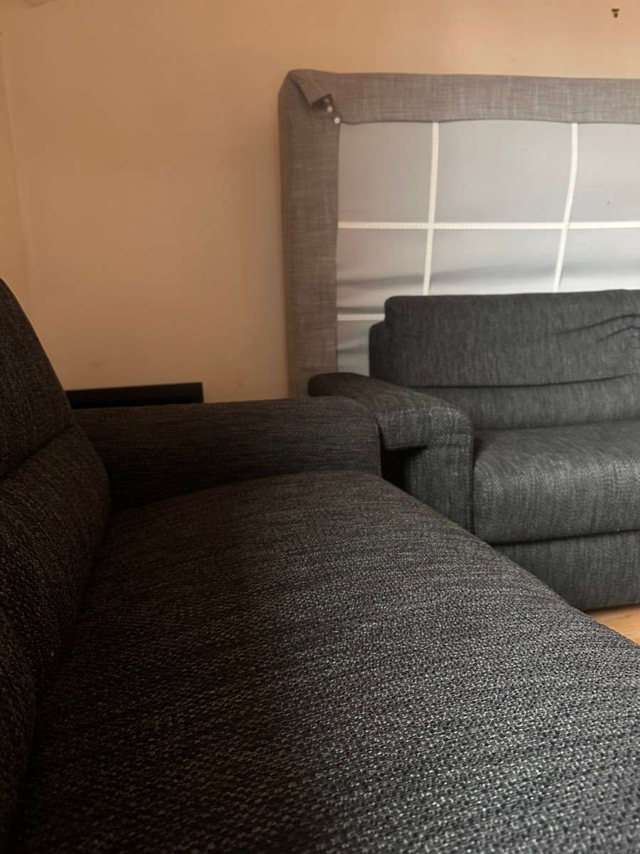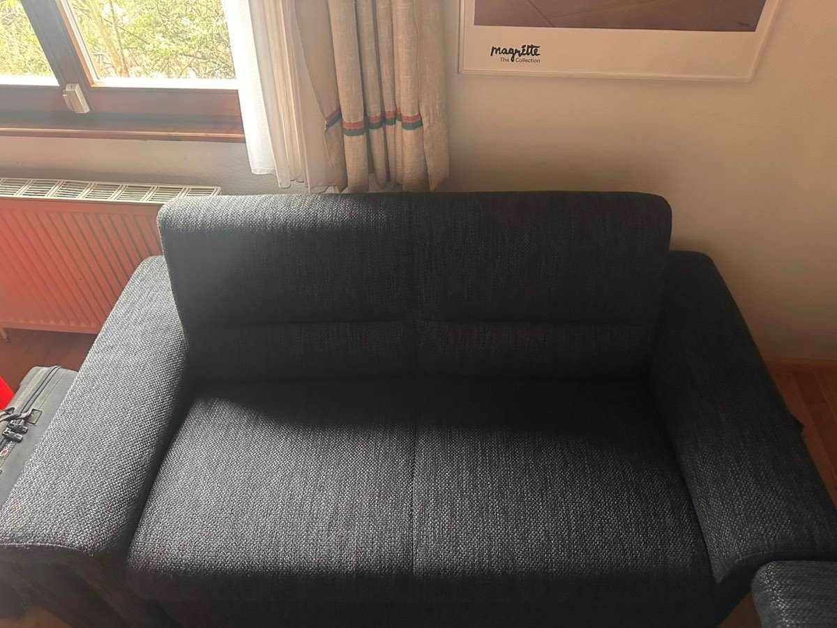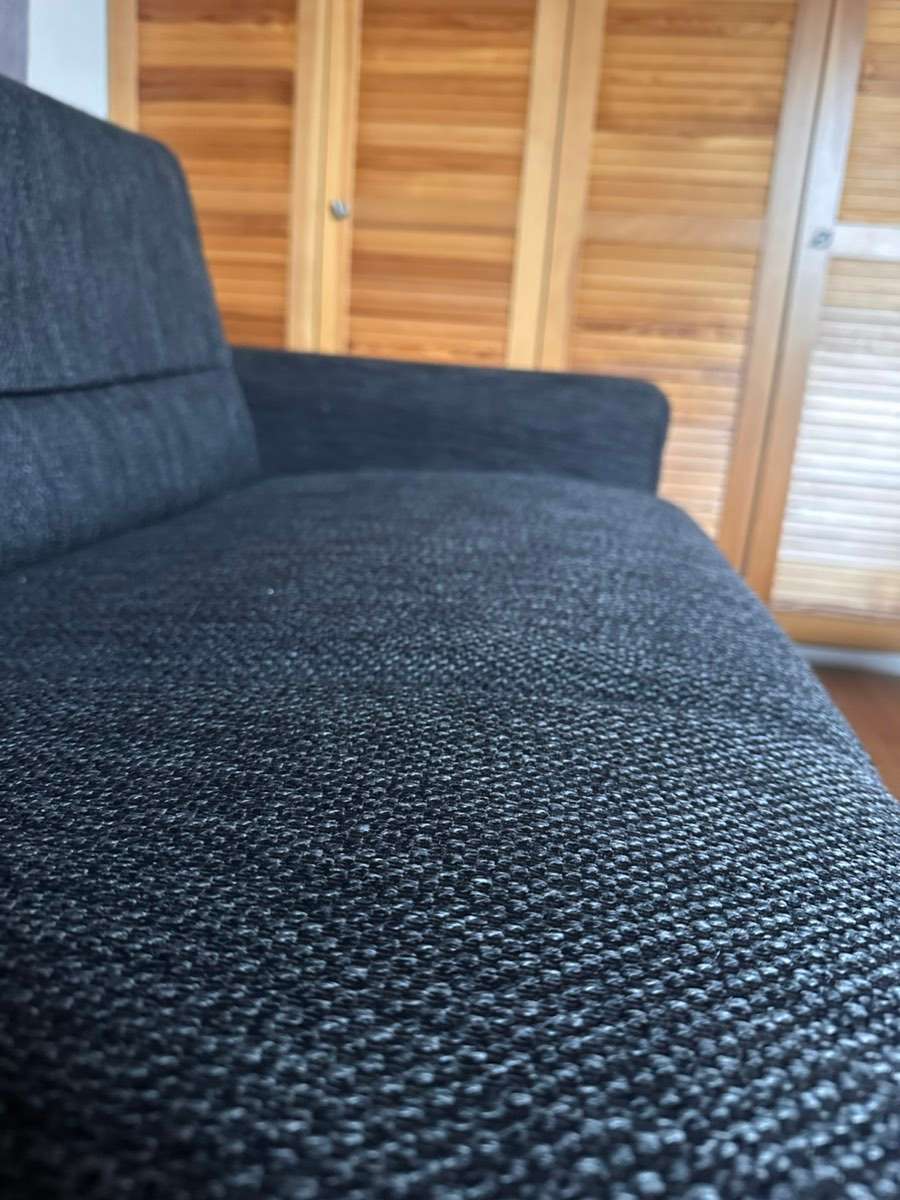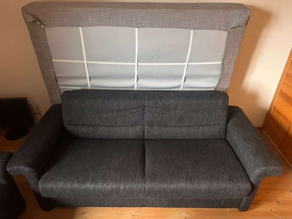 Verschenke eine hochwertige Couchlandschaft in Schwarz-Grau, bestehend aus zwei Teilen. Der große Couchteil ist ausziehbar und ergibt eine großzügige Liegefläche (siehe Fotos). Keine Matratze dabei – Couch kann auch ohne Matratze zusammengeklappt werden....