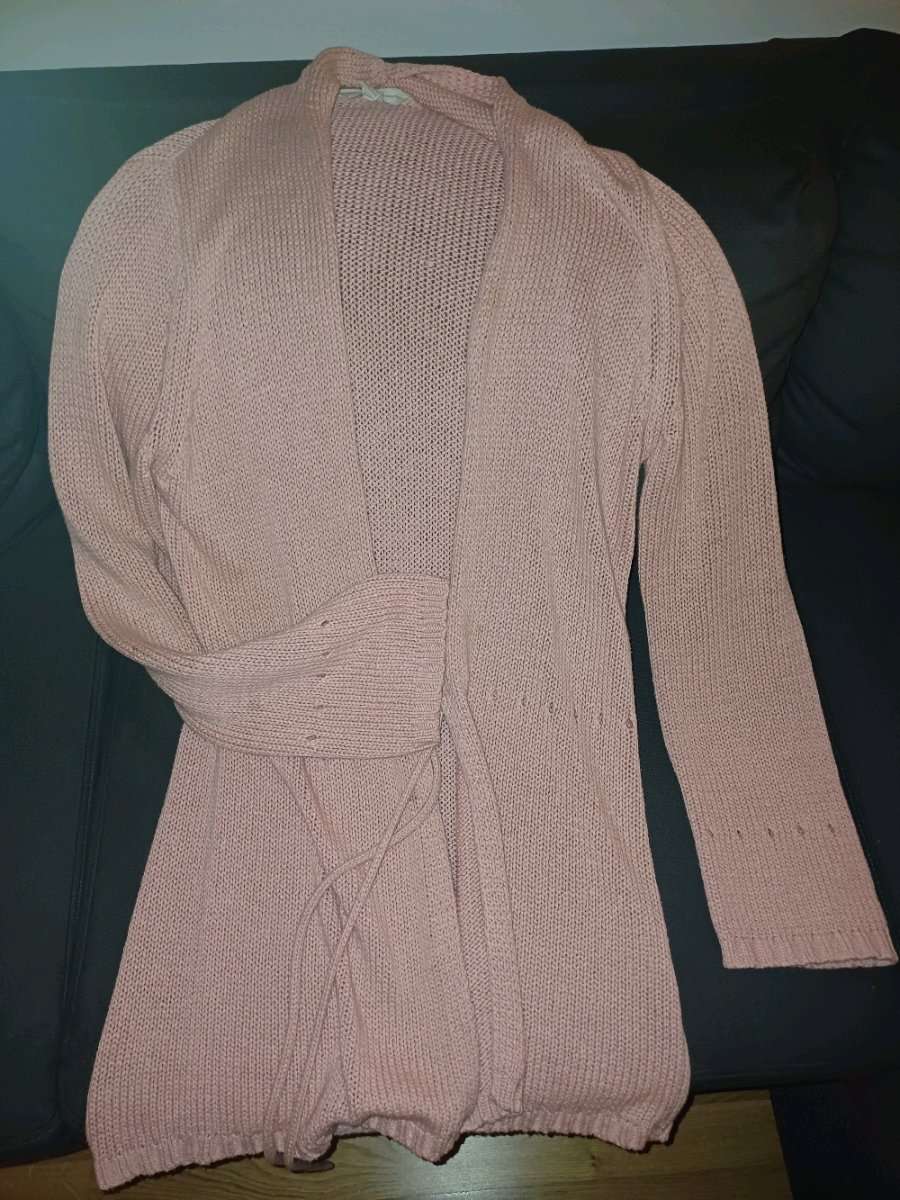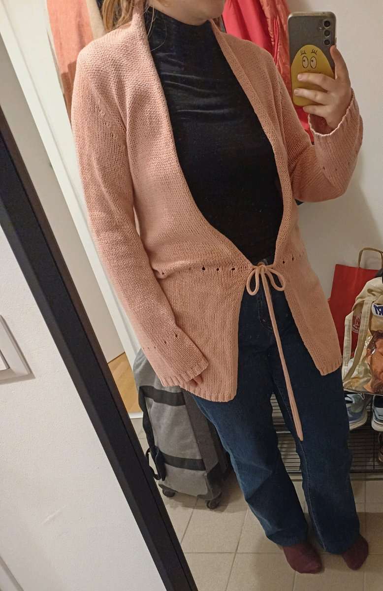 Hellrosa, sehr gemütlicher Cardigan; selten getragen (ich glaube es ist Umstandsmode, aber auch für gemütliche Zuhause-Mode geeignet) Bitte nur Selbstabholung :-)