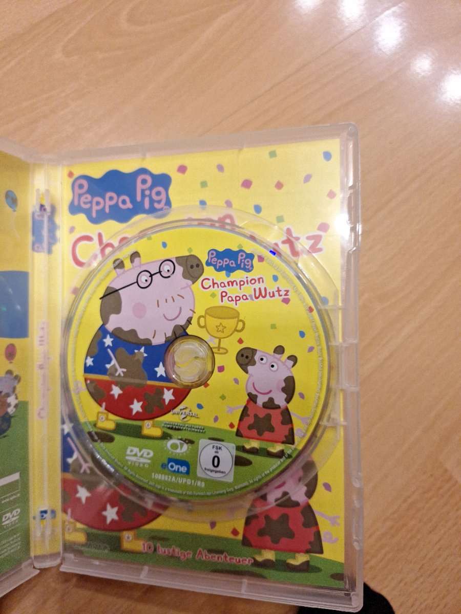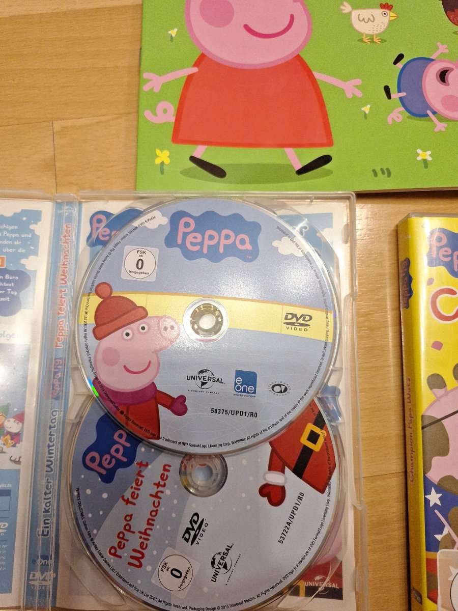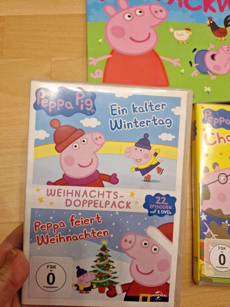 2 Peppa Pig DVDs und ein Ausmalheft ( erste 2 Seiten hat mein Kind bereits "verschönert" :) Suchen neuen Besitzer Wir sind ein Tier und Raucherfreier Haushalt Nur Selbsabholung