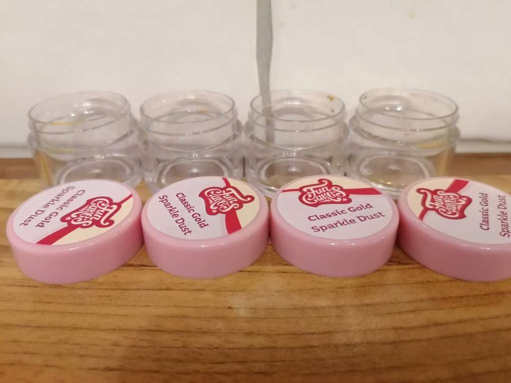 Verschenke 4 kleine Dosen, vorher war Glitzerstaub drinnen