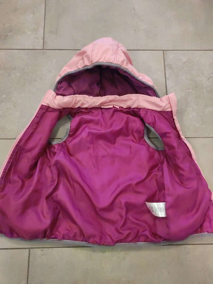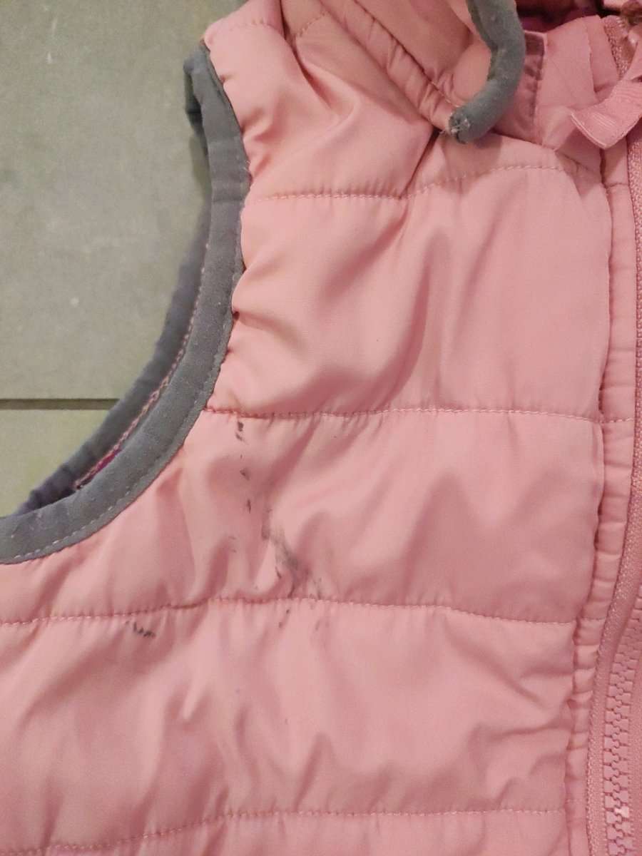 Rosa Impidimpi Gilet in Gr.110/116. Leidersind 2 Flecken beim Waschen nicht hinaus gegangen, ev. versucht man es mit spez.Fleckenentferner nochmal.. Ansonsten keine Beschädigungen! Gepflegter Nichtraucher -Haushalt.