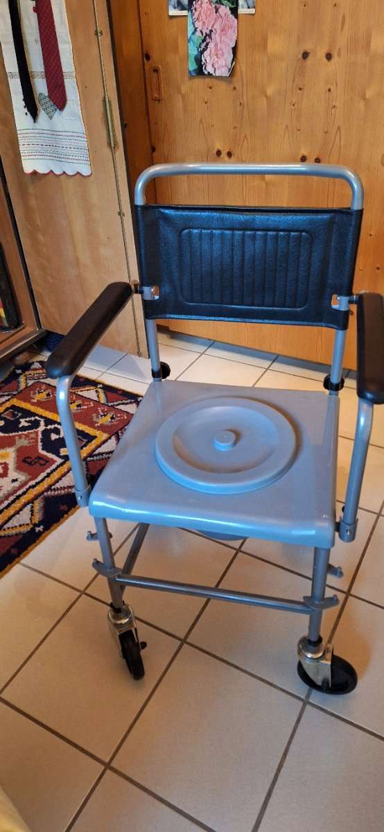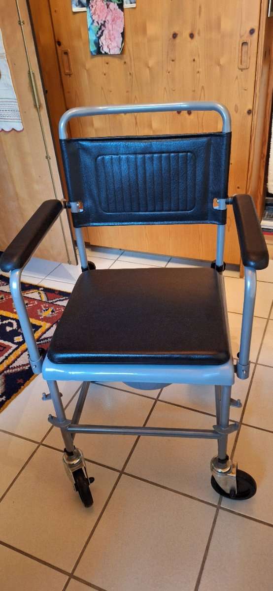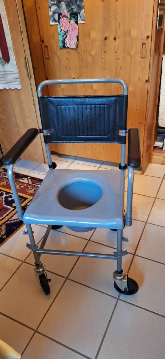 Toilettenstuhl auf Rollen für Senioren. Selbstverständlich gereinigt! Selbstabholung in Kufstein, keine Rücknahme, keine Garantie!