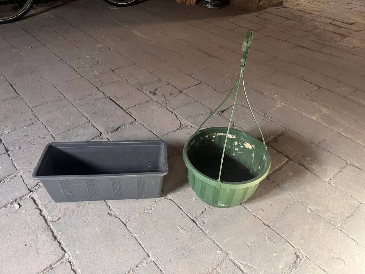 1 länglicher Topf (zb für Fensterbrett) 1 Topf mit Aufhängevorrichtung Beachte gerne auch meine weiteren Anzeigen!