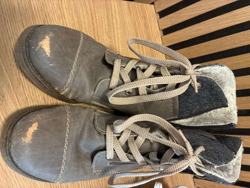 Farbe vorne abgewetzt, sind aber noch schön warm :)